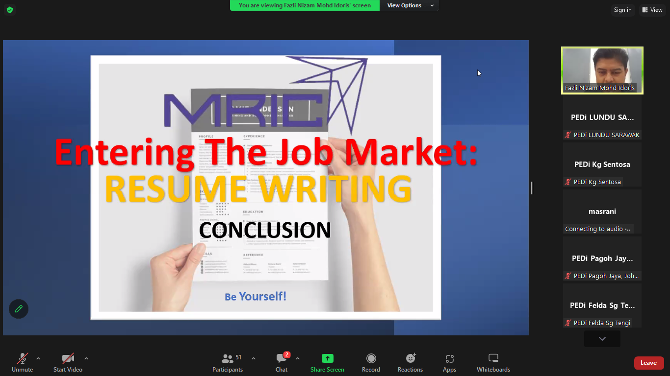 ENTERING JOB MARKET – RESUME (CONCLUSION)