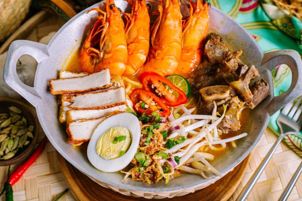 Pelbagai makanan yang terdapat di Warung Kak Hajah ini. Antara yang paling popular adalah mee kuah tulang dan mee kuah udang harimau. Terdapat juga menu-menu lain seperti: nasi set (ikan siakap 3 rasa, telur dadar, tomyam dan kailan ikan masin), westren set dll.